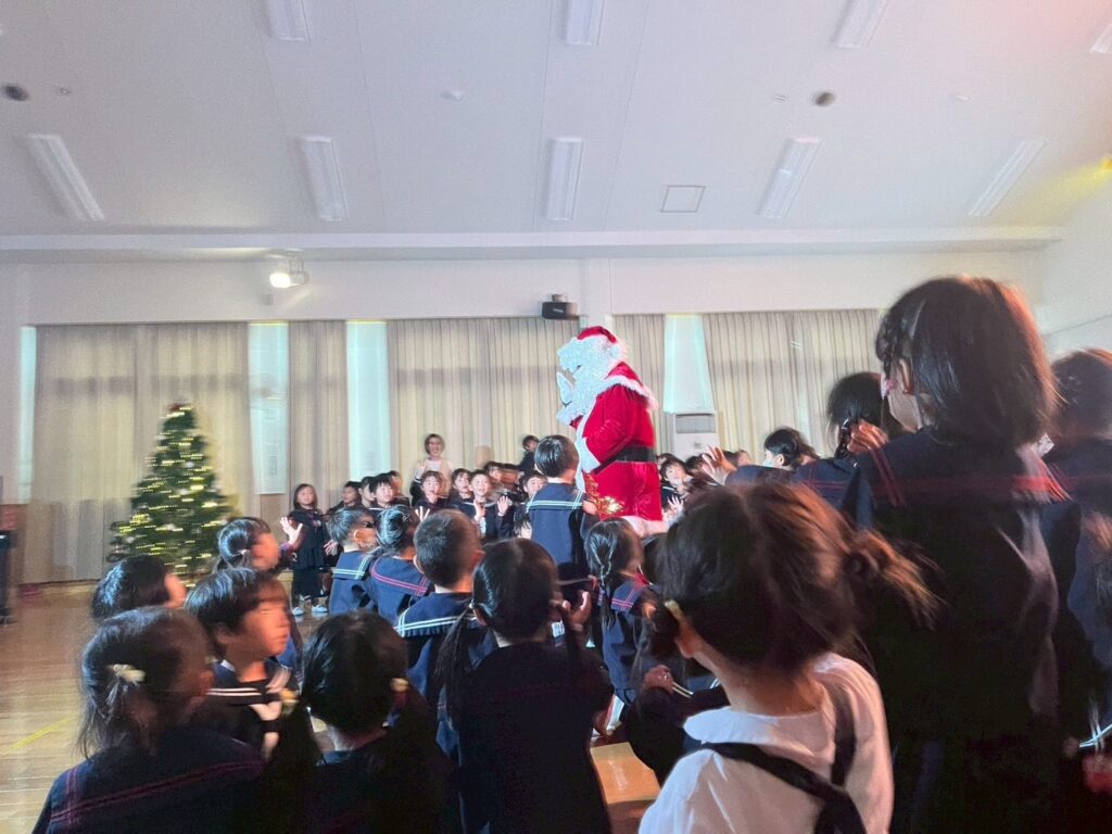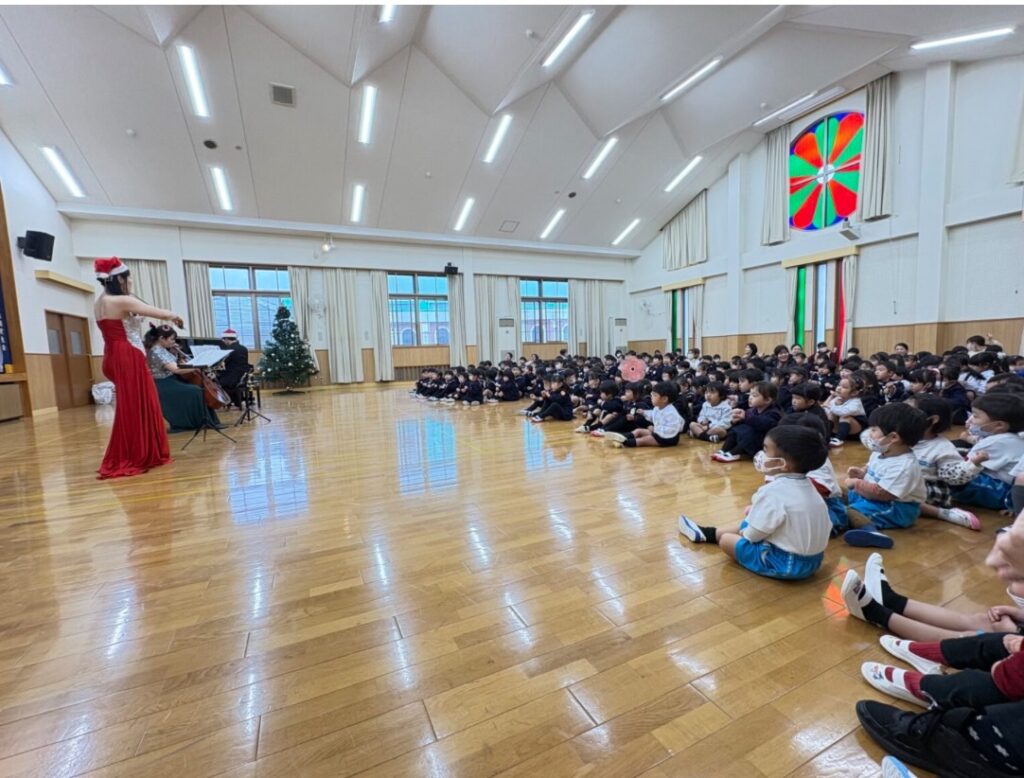 素敵な演奏会が終わり、クリスマスのお勉強を少しだけしていると、どこからか鈴の音が…✨️みんな「どこ!どこ!」と必死に探します🔎みんなでサンタさーん!と呼ぶと後ろからサンタさん登場🎅