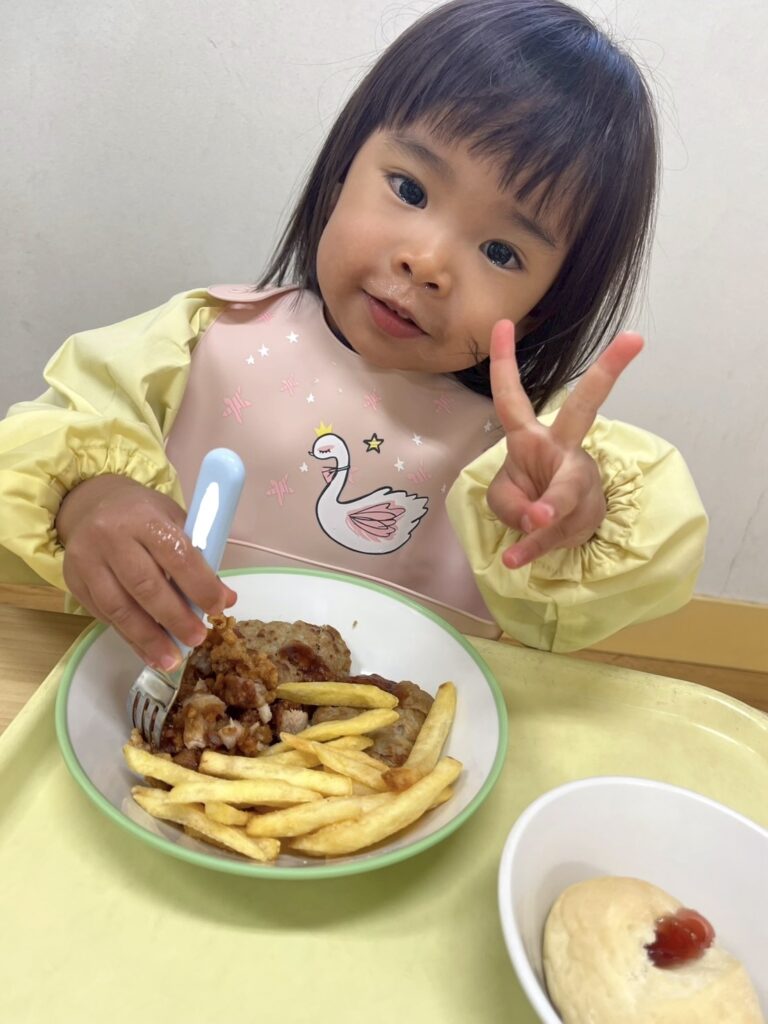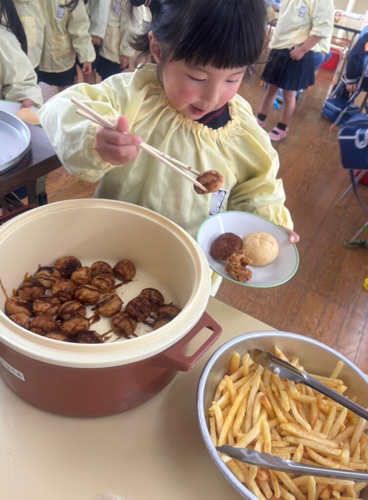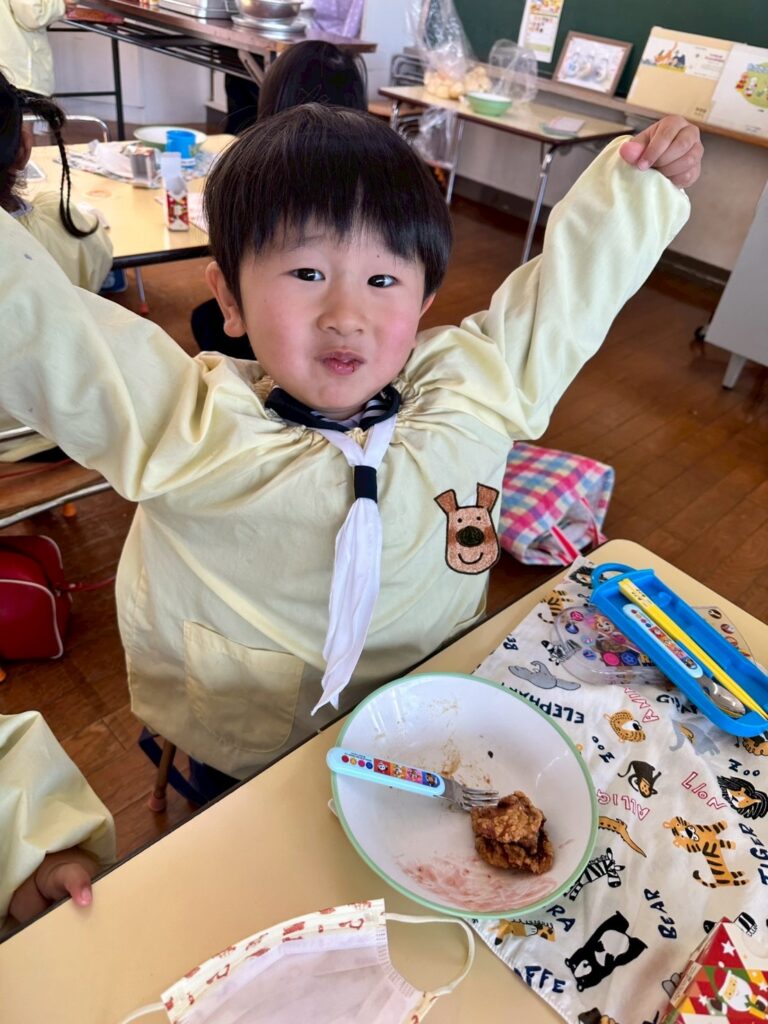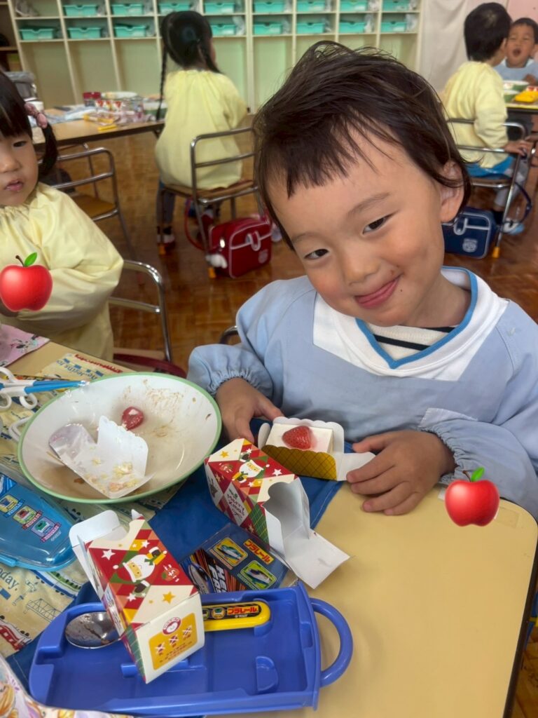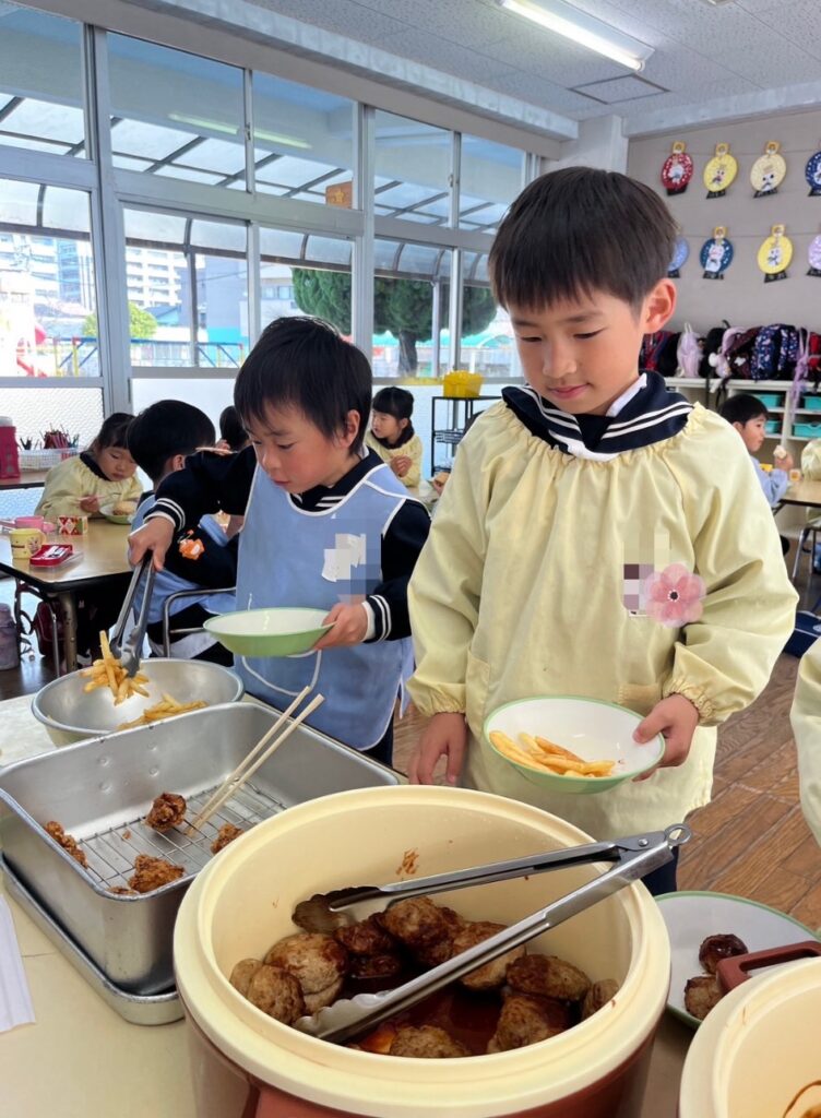 サンタさんとお別れした後は最後のプレゼント🎁お待ちかねのバイキング給食🍗⸒⸒何があるかドキドキワクワク🥰