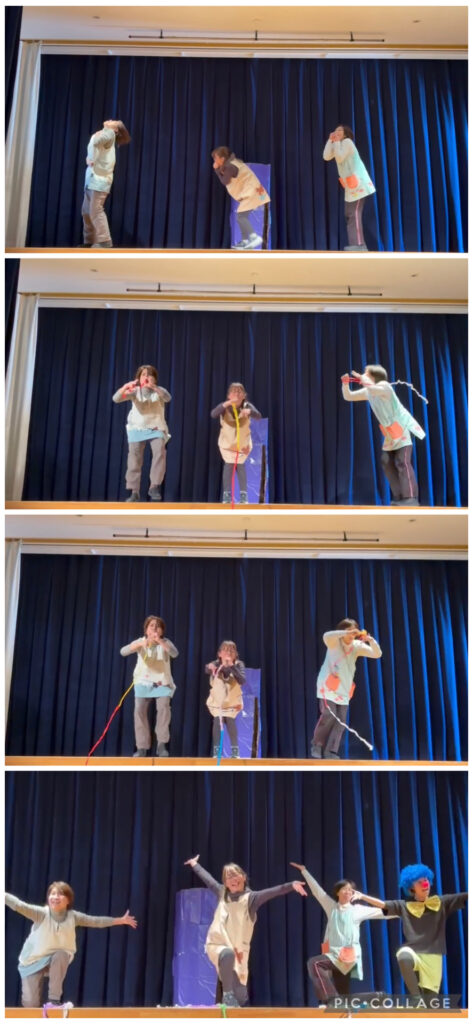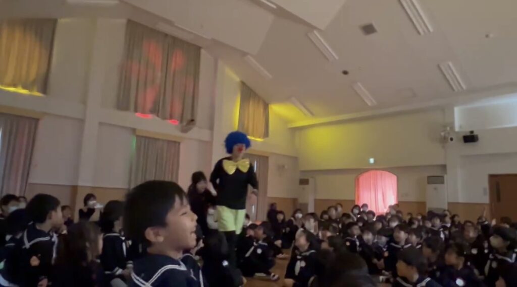 「誰かやってみてくれるお友だちいないかな?」ピエロがジェスチャーで訴えます😆