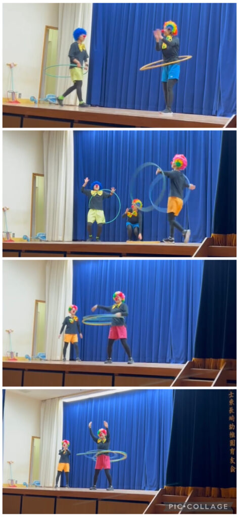 それぞれのピエロが、フラフープを使って