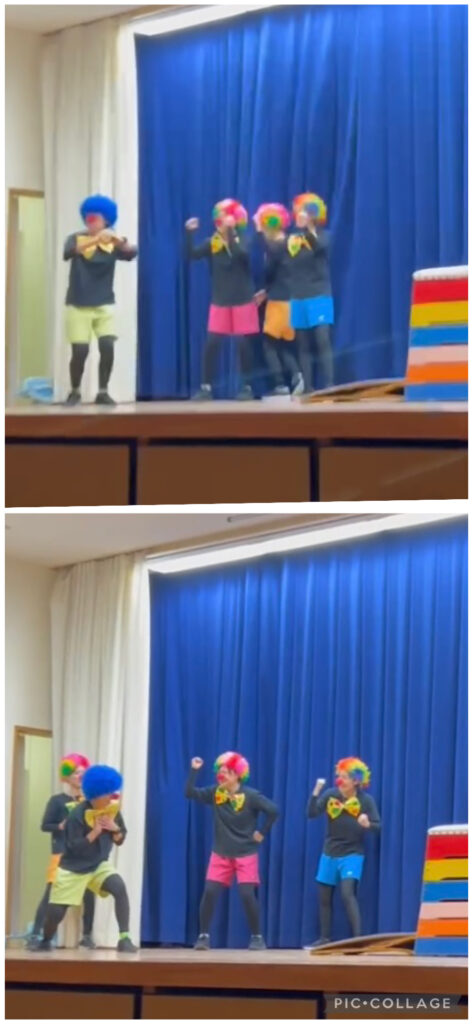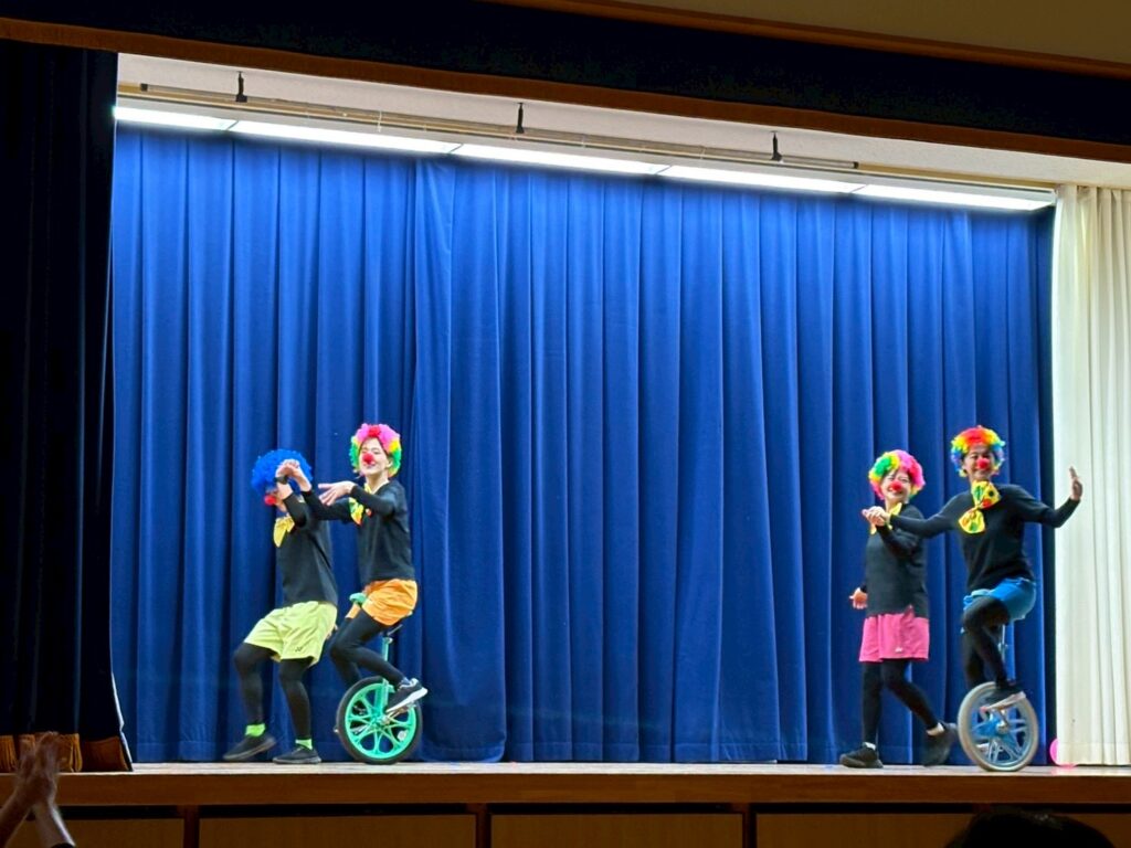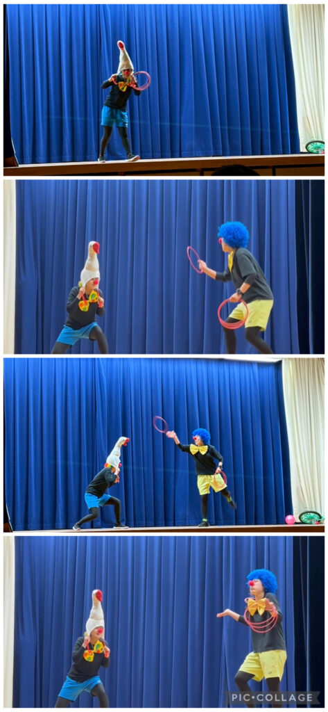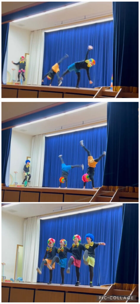 側転や一輪車に乗ってピエロが登場〜🤩🤩🤩🤩