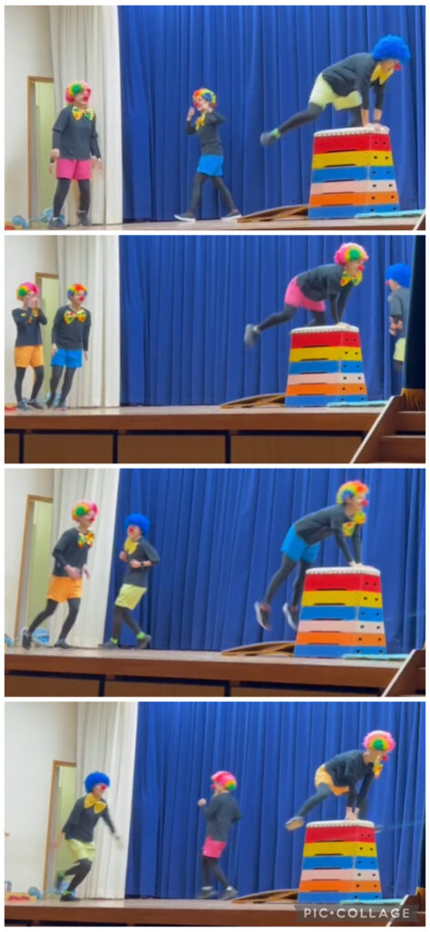 何回も跳び箱を飛びまくるピエロさんたちに子どもたちも大興奮🤣🤣🤣