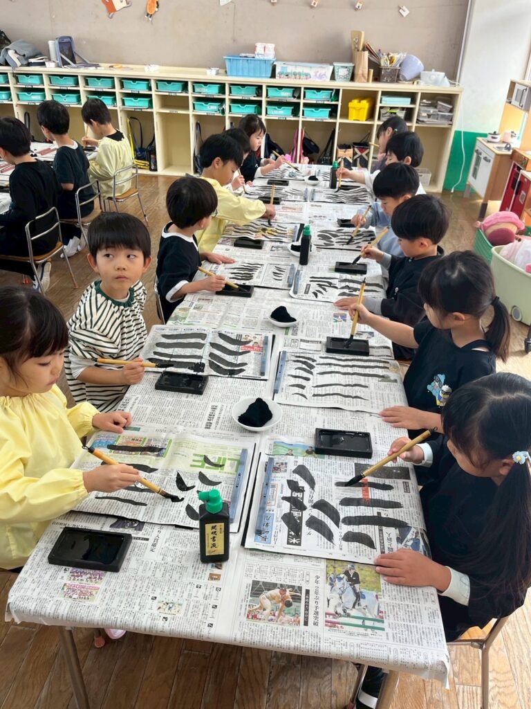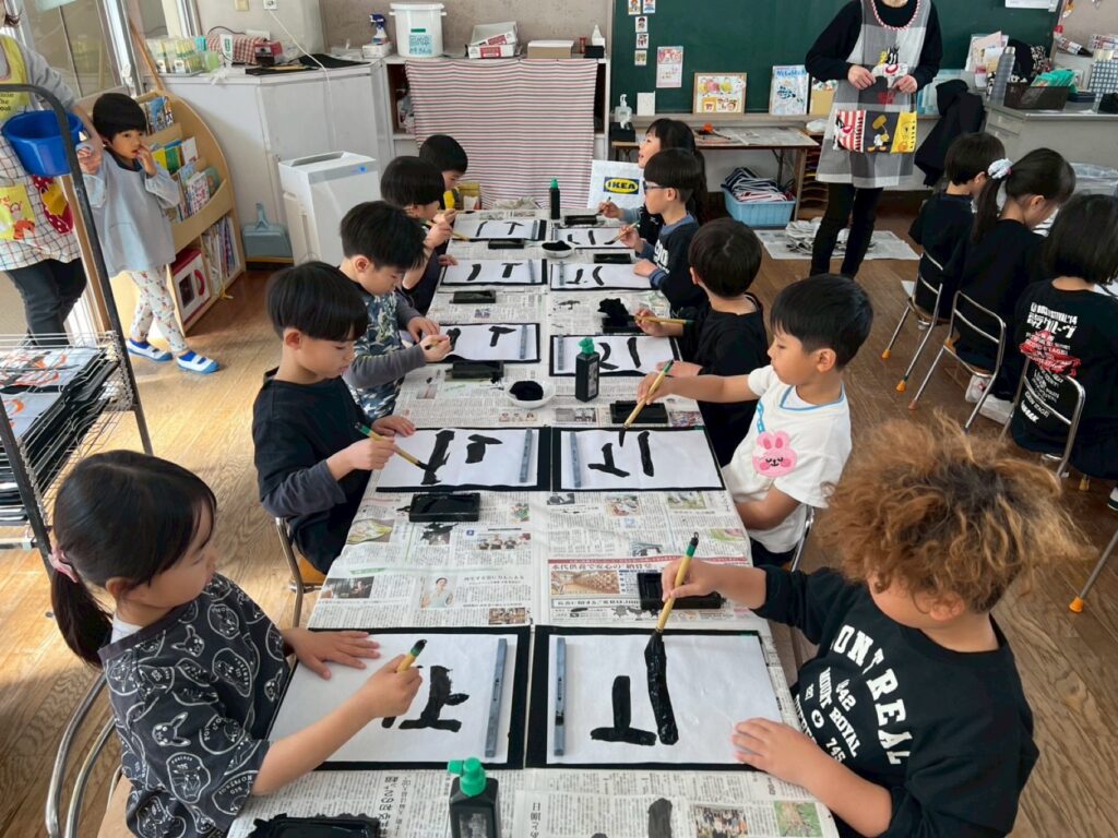 1月22日(木)、年長組で3学期初✨の習字を行いました。