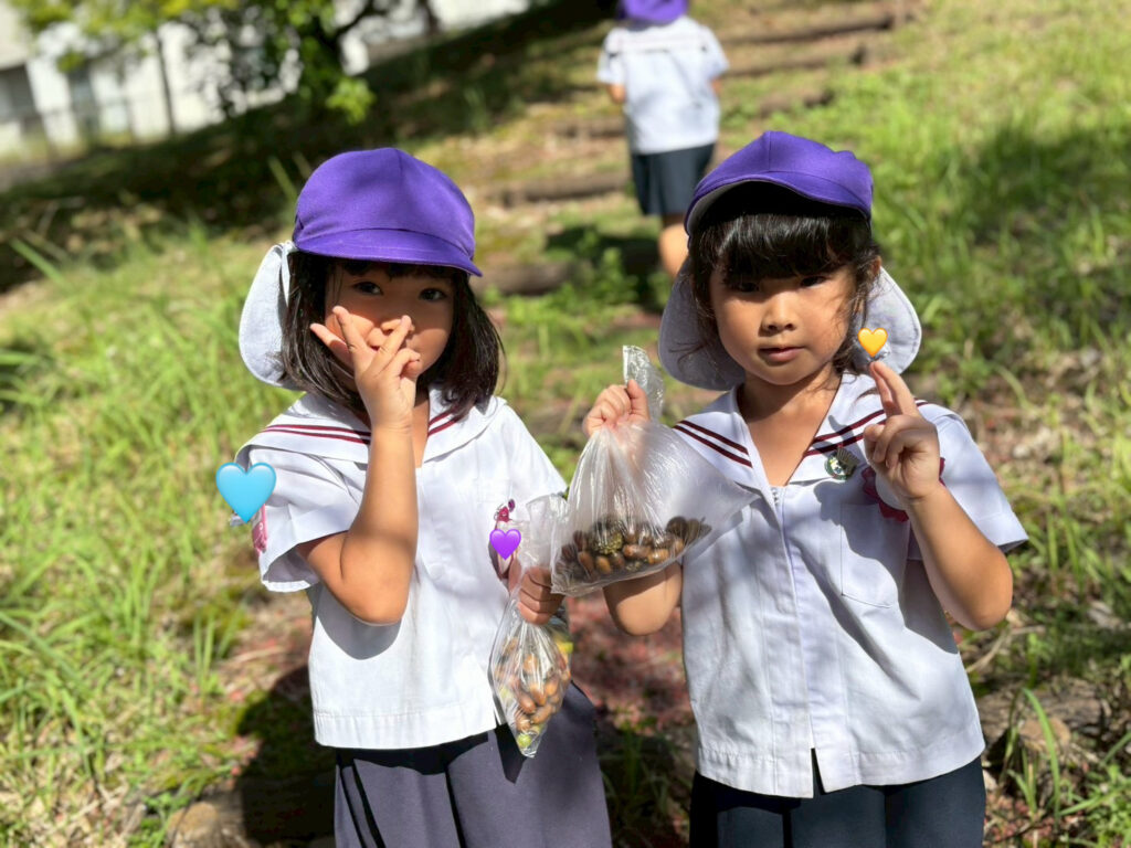 公園に入るとさっそくどんぐりを発見!!🤩🍂 「わぁー!ここにいっぱいどんぐりあるよ!💫」「やった〜おっきいのゲットー!𖤐 ̖́-」 と目がキラキラな子どもたちです😆❤️