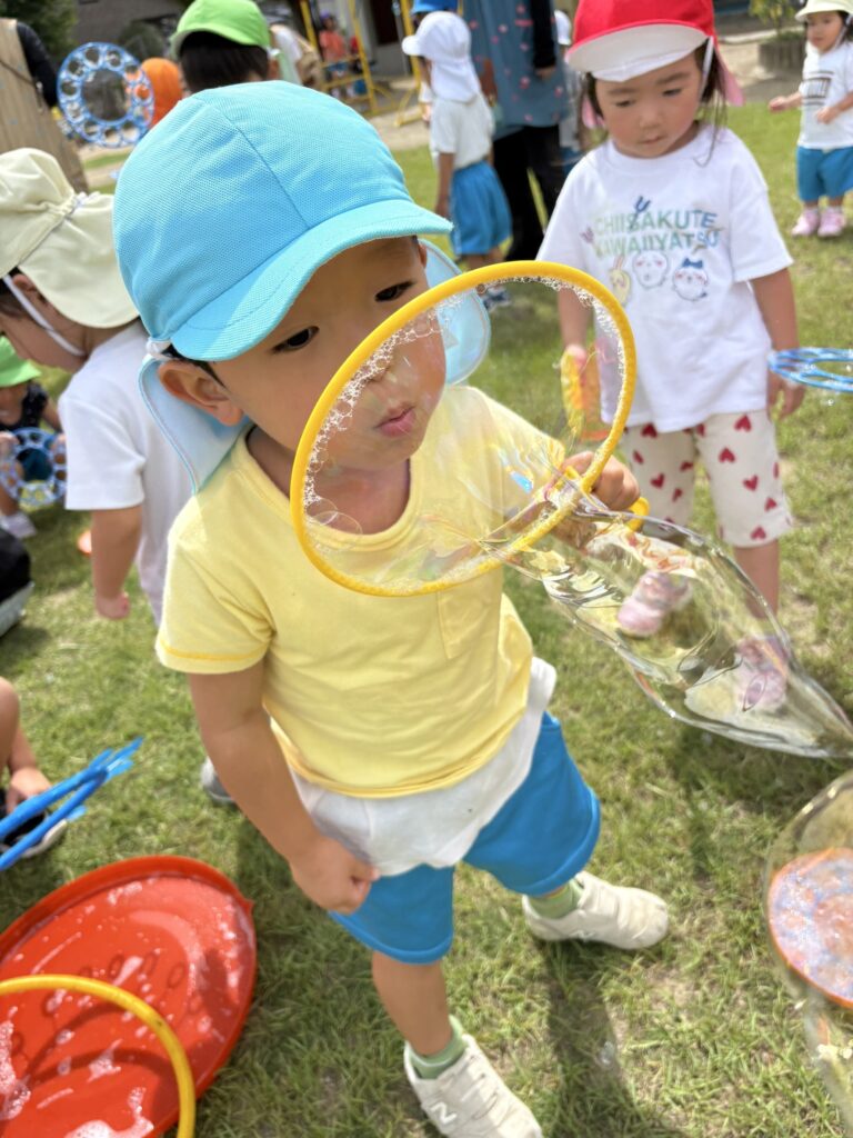 シャボン玉遊びや色水遊びなど、お友だちや先生たちとたくさん遊んで楽しむ姿が見られました✨