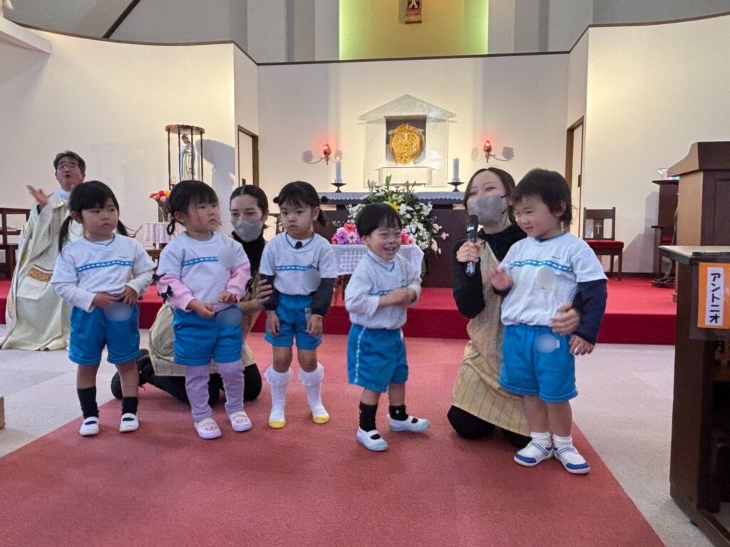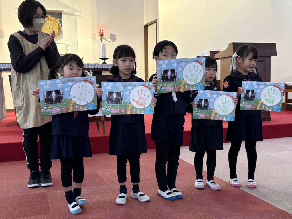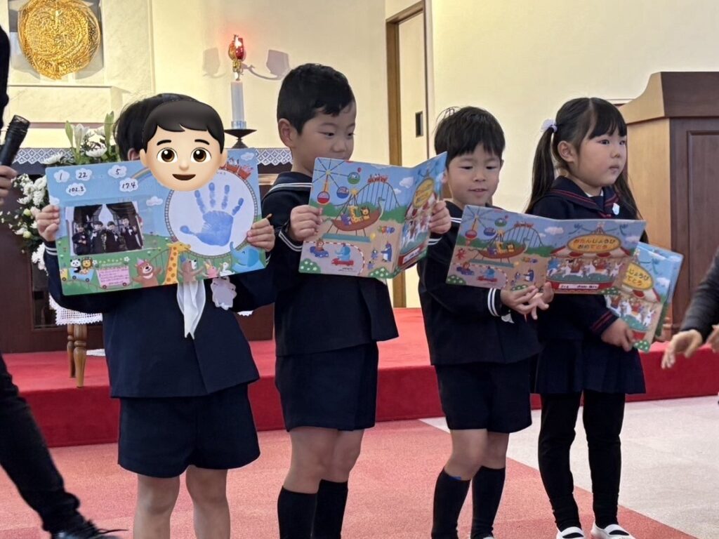 教会でも園長先生に祝福をして頂き、一人一人堂々と発表することもできました!!
