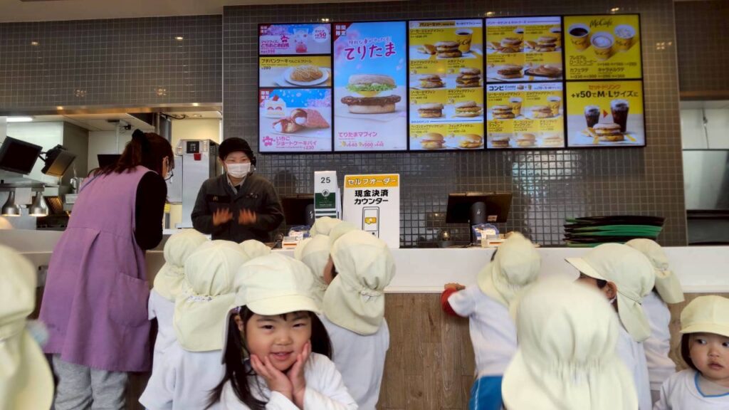 このクラスと過ごすのも後少し🥲🩷まだまだ思い出作ってあげたい😆よし!!散歩してマクドナルドに行って🍟買いにいこ〜!と言うと、いぇ〜い🙌とノリノリな子どもたち🤭